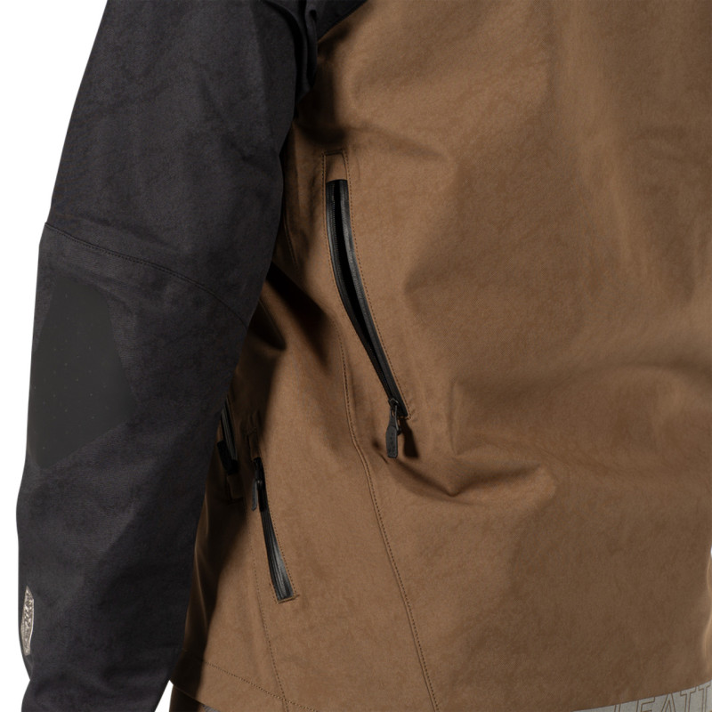 Капюшон Ride Adaptive Hood (RAhD) с высоким воротником можно носить в четырех различных конфигурациях, обеспечивая идеальную защиту в любых погодных условиях. Запатентованная магнитная система капюшона удерживает капюшон на шлеме или спине. Уникальная система Leatt ClimbVent также позволяет полностью расстегнуть куртку для максимальной вентиляции. Нашивки Anti-Slip Shoulder гарантируют, что ваш рюкзак останется на месте, когда начнется дождь, а защитные накладки на предплечьях защитят вашу куртку от зацепов.