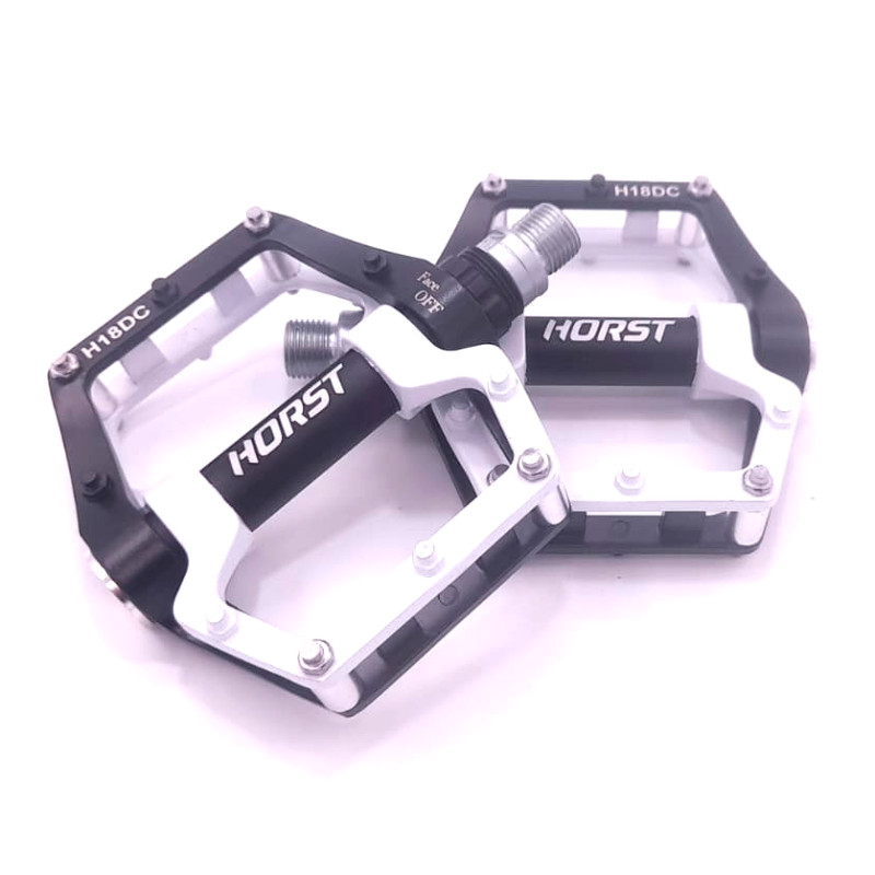 Horst H18DC - недорогие широкие педали-топталки, которые отлично подойдут для MTB и прогулочных велосипедов. Платформы педалей Horst H18DC изготовлены из высокопрочного алюминиевого сплава, ось из Cr-Mo сплава, в каждой педали установлен качественный закрытый промподшипник. Цепкое покрытие и шипы защищают ноги от соскальзывание при активном катании. Вес велосипедных педалей Horst H18DC составляет 455 грамм.