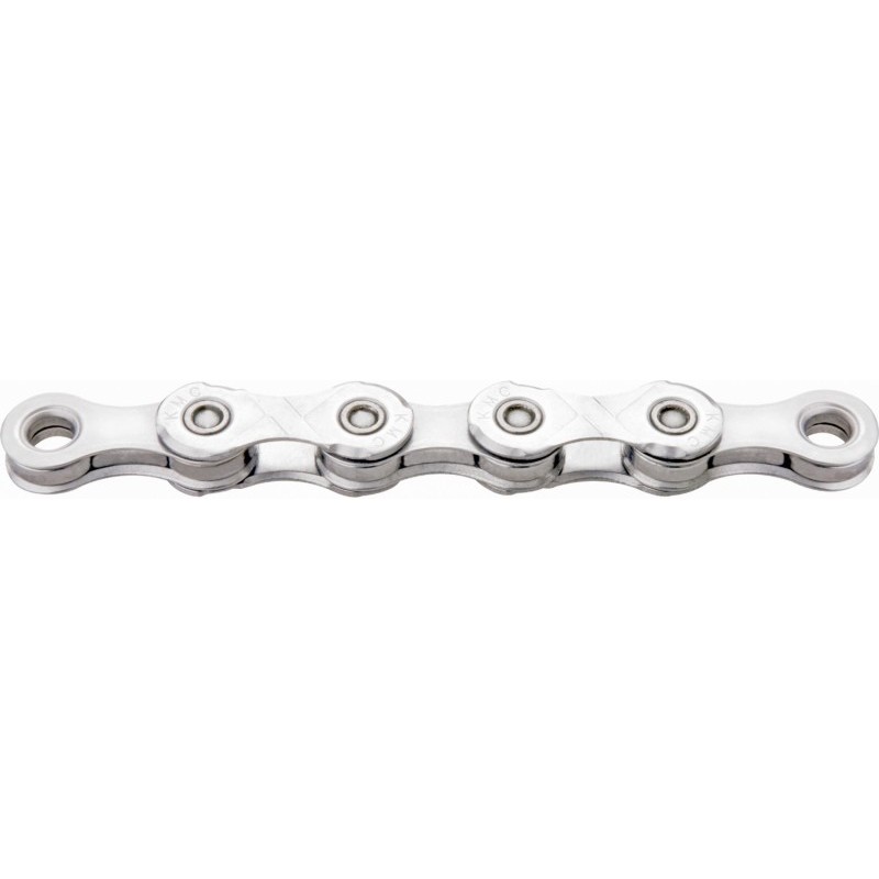 Мультискоростные цепи KMC X могут быть использованы как на шоссейных, так и на горных велосипедах, и подходят к компонентам любых брендов – значение имеет лишь количество звезд кассеты. При этом тесты показали, что цепи KMC X служат дольше, чем аналоги от других известных производителей. В первую очередь, это связано с тем, что они проходят особую термообработку по технологии, называемой XX SP. Кроме того, щечки их звеньев отличаются особой машинной обработкой. Эта технология под названием X-Bridge обеспечивает более четкое и тихое переключение. Серия SL — это самые лёгкие цепи, выпускаемые компанией. Полые пины и дополнительная обработка щёчек звеньев обеспечивают максимально низкий вес без ущерба для надёжности и функциональности цепи.