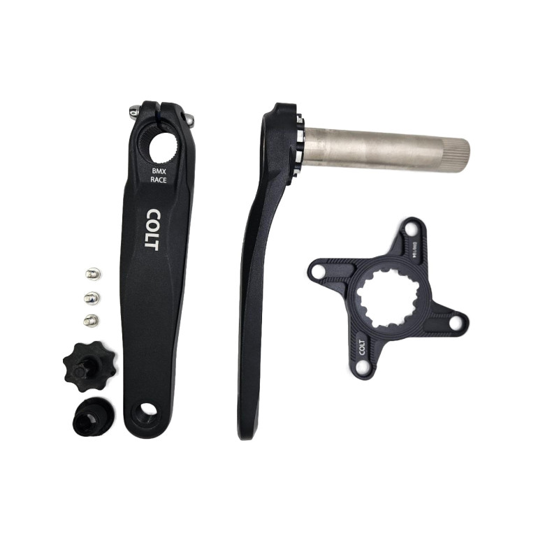 Система Colt BMX Race односкоростная с возможностью установить цвезду 104 BCD или Direct Mount, длина шатуна 170 мм, под тип каретки Hollowtech II.