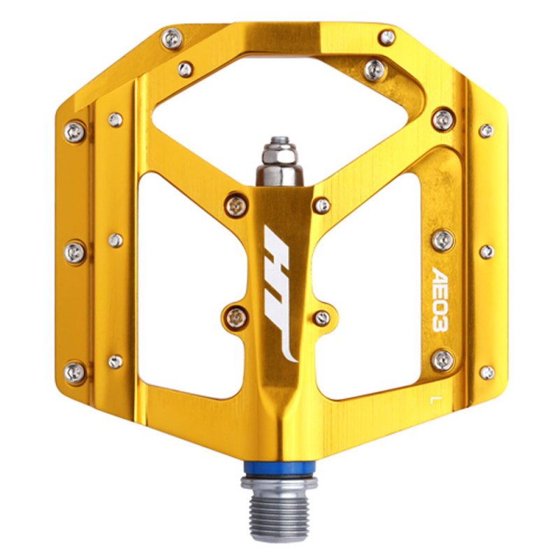 Плоская педаль HT AE03 с новой системой подшипников HT EVO+. Все новые внутренние компоненты педалей HT AE03 обеспечивают долговечность, прочность и производительность. Используя игольчатые подшипники премиум-класса, втулки igus® iglidur® немецкого производства и высококачественную смазку, система EVO+ обеспечивает до 5 раз лучшую производительность, чем предыдущая система EVO. Уникальная патентованная система подшипников и дизайн позволяют педалям HT AE03 быть тоньше и вращаться более плавно, чем остальные конкуренты.