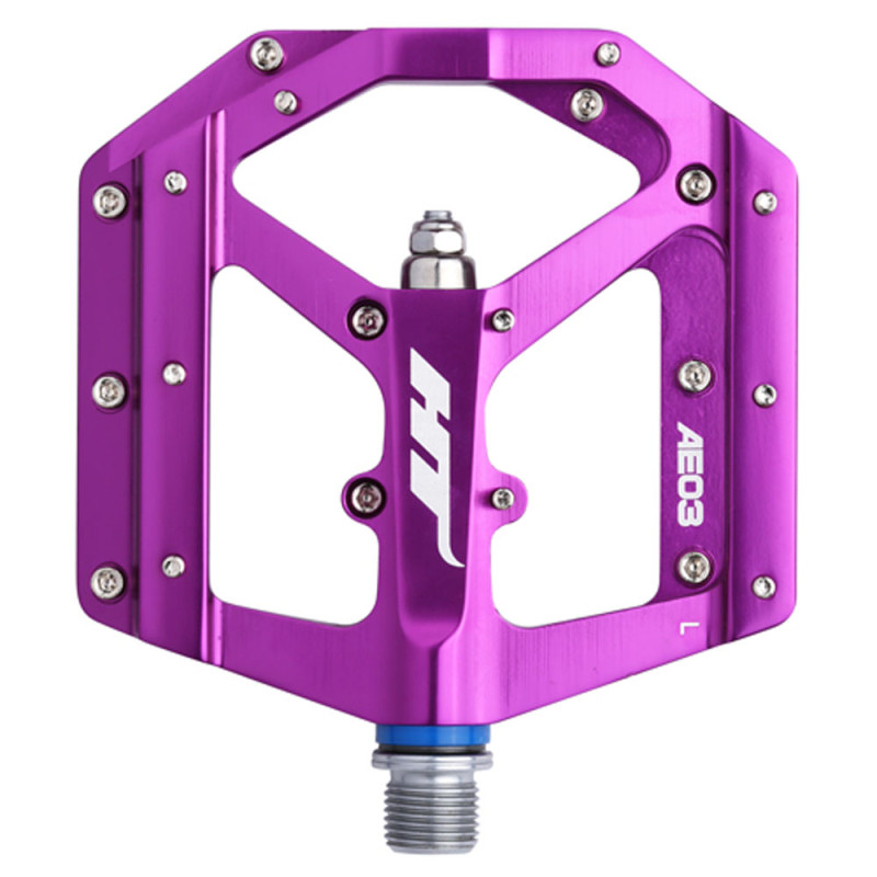 Педали HT AE03 созданы для тех, кто ценит надежность и комфорт. За счет применения технологии EVO педали HT AE03 станут для вас простыми и удобными в обслуживании. Педали HT AE03 не требуют тщательного ухода, не прихотливы к грязи, а специально обработанный алюминий на станках с ЧПУ препятствует коррозии. Всего 11 мм высоты профиля заметно снижают центр тяжести велосипеда, что положительным образом сказывается на управляемости. А алюминиевая платформа, имеющая 10 сменных шипов на одну сторону, выдерживает удары камней, благодаря своей прочности. Отличный вариант для тех, кто использует свой велосипед на максимум, по самым различным трассам, в любую непогоду.
