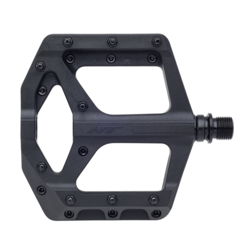 Педаль HT PA32A оснащена увеличенной осью диаметром 12 мм для повышения жесткости и прочности. В комплекте также идут 18 сменных стальных шипов, обеспечивающих надежное сцепление даже в самых сложных условиях.
