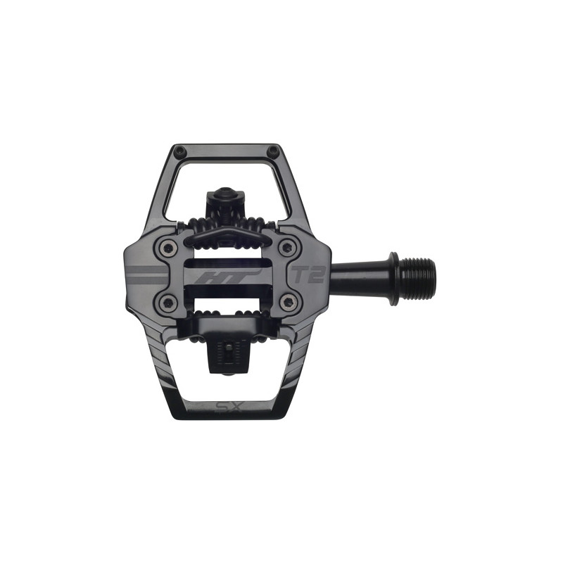 T2SX от именитого производителя профессиональных компонентов HT - пожалуй лучшее эффективное решение из контактных педалей для дисциплин трейл, эндуро и АМ. Платформа педалей HT T2SX выполнена из легкого алюминиевого сплава, двусторонняя система зацепов из прочного Cr-Mo сплава. Рамка позволяет снизить нагрузку на стопу при жестких приземлениях и постоянном педалировании, а также осуществляет дополнительную защиту замка. Фиксируется корпус через герметичные промышленные подшипники и втулку скольжения igus, на Cr-Mo ось, которые также в совокупности долго и беспроблемно служат в любых условиях. Система фиксации имеет регулировку усилия встегивания и выстегивания. Совместимы с фирменными шипами стандарта HT exclusive system - X1E / X1 / X1F. Обратите внимание, педали HT T2SX и система крепления несовместимы со стандартом SPD от Shimano.