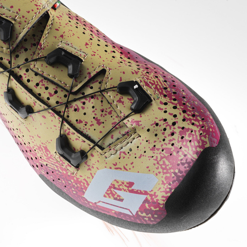 Материал из микрофибры стратегически перфорирован отверстиями разных размеров, продуманно расположенными по всей верхней части, чтобы оптимизировать воздухопроницаемость и улучшить вентиляцию, сохраняя ноги сухими и прохладными на протяжении всей поездки. Внутри ботинка Gaerne G.Lampo используется сетка, обеспечивающая надежную поддержку стопы и повышающая устойчивость.
