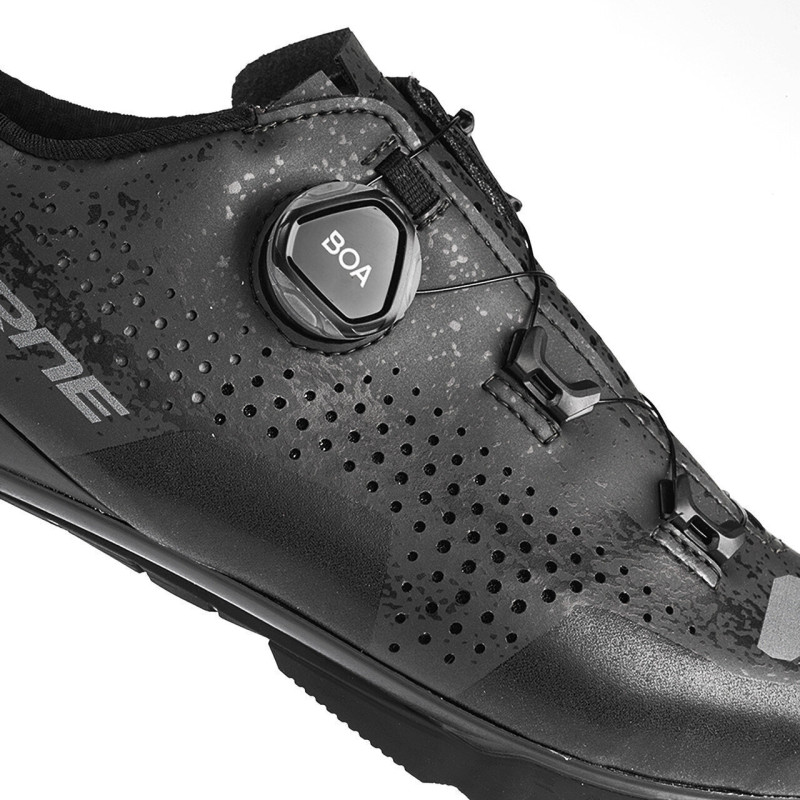 Система закрытия, оснащенная микрорегулируемой катушкой BOA L6 DIAL C и 5 направляющими для шнурков, обеспечивает равномерное и надежное закрытие без точек давления. Закругленная часть катушки BOA выполнена из резины, что обеспечивает отличное сцепление. Стелька COMFORT FIT TONGUE включает в себя высокотехнологичный слой подушки для повышенного комфорта и воздухопроницаемости. Интегрированная противоскользящая чашка пятки улучшает стабильность и контроль стопы для более комфортного катания. Стелька EPS TRANSPIRANT INSOLE с анатомической поддержкой обеспечивает комфорт и эффективность педалирования.