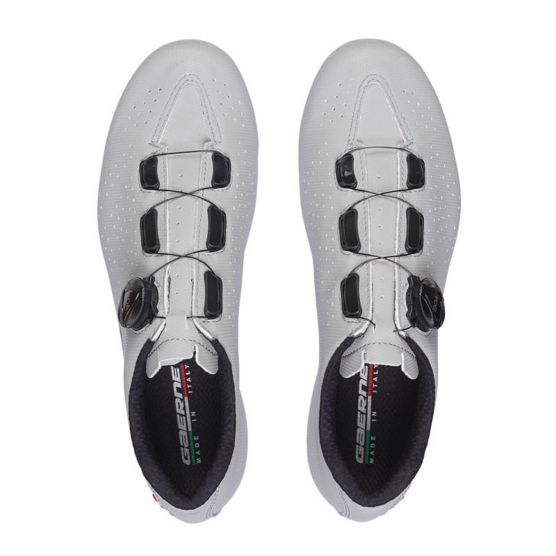 Велотуфли Gaerne G.Sprint изготовлены из материалов премиум-класса, которые обеспечивают превосходный комфорт и технические характеристики. Верх полностью изготовлен из мягкого и перфорированного микроволокна для улучшения воздухопроницаемости. А система катушек BOA L6 с микрорегулировкой обеспечивает постоянную фиксацию без каких-либо точек давления и дискомфорта. Язычок обуви Gaerne G.Sprint перфорирован для лучшего внутреннего воздушного потока и имеет высокотехнологичный амортизирующий слой для повышенного комфорта.