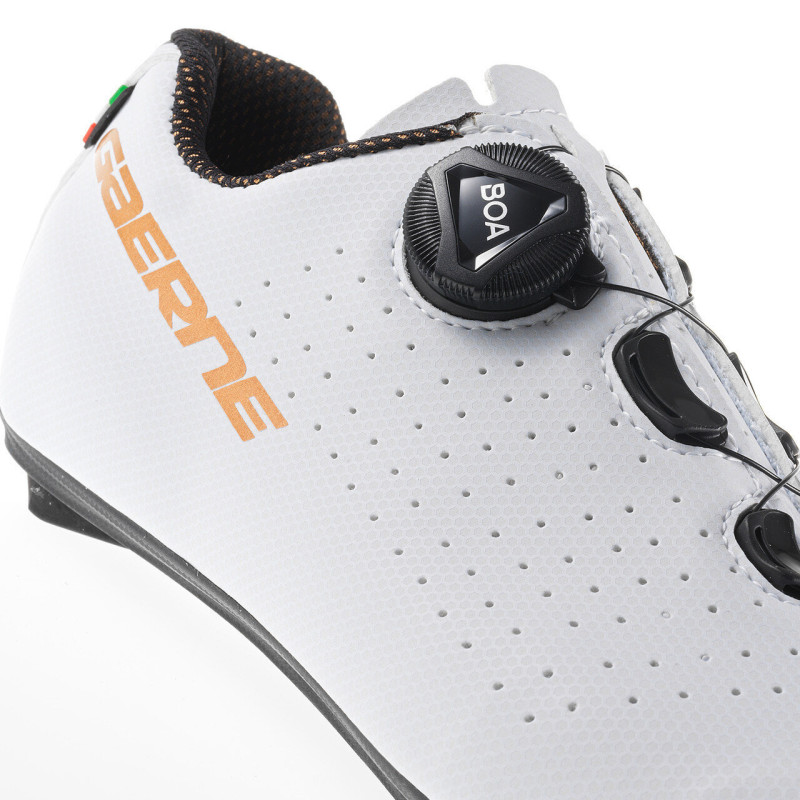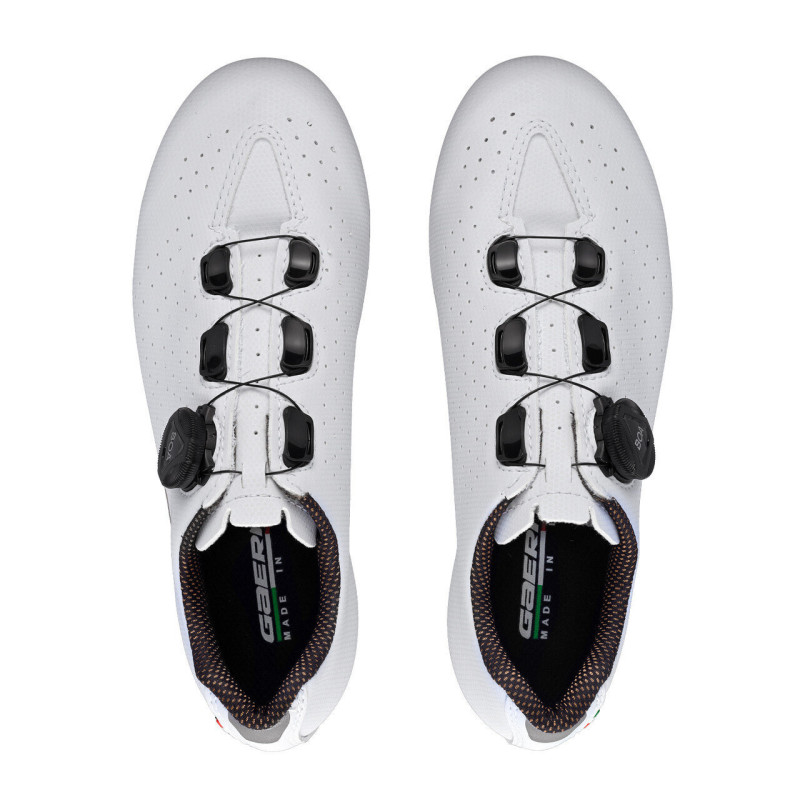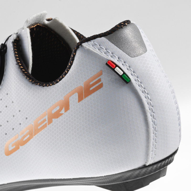 Эффективные и удобные туфли Gaerne G.Sprint Lady, от итальянской компании Gaerne, предназначены для начальных и любительских шоссейных дисциплин, позволяют комфортно и легко достигать высоких результатов. Велотуфли Gaerne G.Sprint Lady выполнены из микрофибры, оснащены достаточным количеством перфорационных отверстий для идеального обдува стоп. Также обдуву способствует фирменная технология с воздушными каналами, обеспечивающая отличный отвод тепла и сохранение сухости. Система струнной шнуровки, построенная на микро-регулировке независимого ролика BOA L6, вместе с удобным язычком обеспечивают отличную фиксацию обуви на стопе и носке, а также комфорт движения при максимально плотной посадке. Само положение стопы внутри обуви также долго и тщательно разрабатывалось для предельно эффективного переноса всей мощности с ног на педали. Упругая и легкая нейлоновая подошва, надежно удерживает шип и имеет широкий диапазон регулировки положения, а резиновые вставки на носке и пятке позволят с оптимальном удобством ходит в туфлях по асфальту. Данные туфли станут отличным решением экипировки для тех, кто впервые планирует попробовать шоссейные туфли и ожидает большие показатели удобства и эффективности.