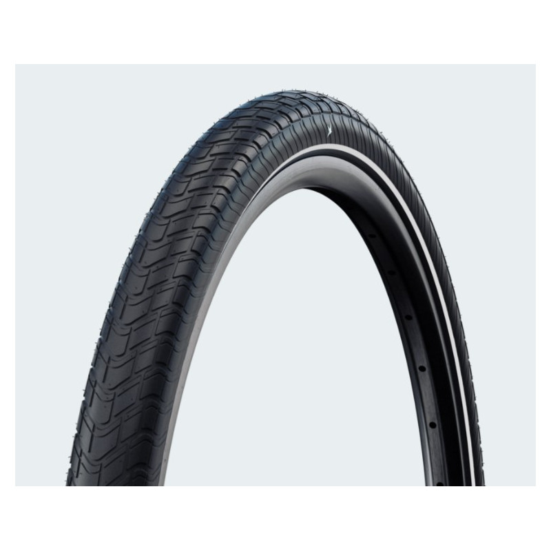 BIG APPLE - универсальная покрышка от известного немецкого производителя Schwalbe. Высококачественная шина совместила в себе превосходное сцепление, отличный накат, комфорт и стабильность на асфальте. Слой RaceGuard эффективно защищает от проколов и порезов. Прекрасные ходовые качества, надежная антипрокольная защита, светоотражающие полосы на боковинах, все это делает BIG APPLE отличной покрышкой для городской езды.