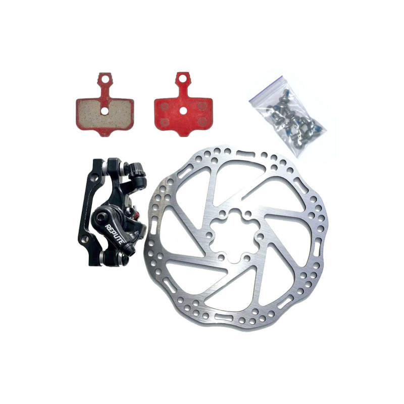 Комплект Repute DSC-510 - это набор бюджетных механических дисковых тормозов на переднее колесо. Механические дисковые тормоза Repute DSC-510 обеспечивают неплохую производительность и контроль торможения как в сухих, так и в мокрых условиях. В комплекте Repute DSC-510 суппорт, колодки VX839, ротор 160 мм.