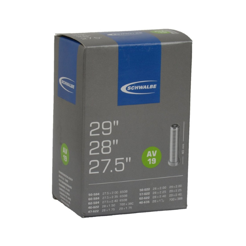 Schwalbe AV19 это надежная велосипедная камера для современных горных и туристических велосипедов с диаметром колес 27.5, 28 и 29 дюймов. Благодаря широкому растяжения, одна и та же модель совместима с покрышками шириной от 1.60 до 2.40 дюйма. Камера Schwalbe AV19 оснащена классическим автомобильным ниппелем Schrader длиной 40 мм, что позволяет накачивать колеса любым стандартным насосом или компрессором на автозаправках без использования переходников. Вес камеры Schwalbe AV19 составляет 220 грамм, что обеспечивает оптимальный баланс между прочностью и легкостью для повседневного катания и длительных поездок.