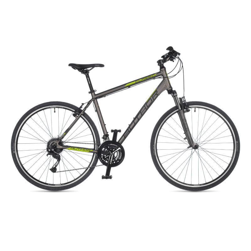 Трансмиссия на 27 передач состоит из компонентов любительского уровня Shimano Alivio и Shimano Acera/Altus. Такое количество скоростей в сочетании с системой звезд 48-36-26 позволяет легко преодолевать крутые подъемы и поддерживать высокую скорость на спусках. Велосипед комплектуется большими 28-дюймовыми колесами с универсальными покрышками Author Cross, которые обеспечивают отличный накат. За безопасную остановку отвечают классические ободные тормоза V-brake от Tektro, отличающиеся простотой в обслуживании и эффективностью.